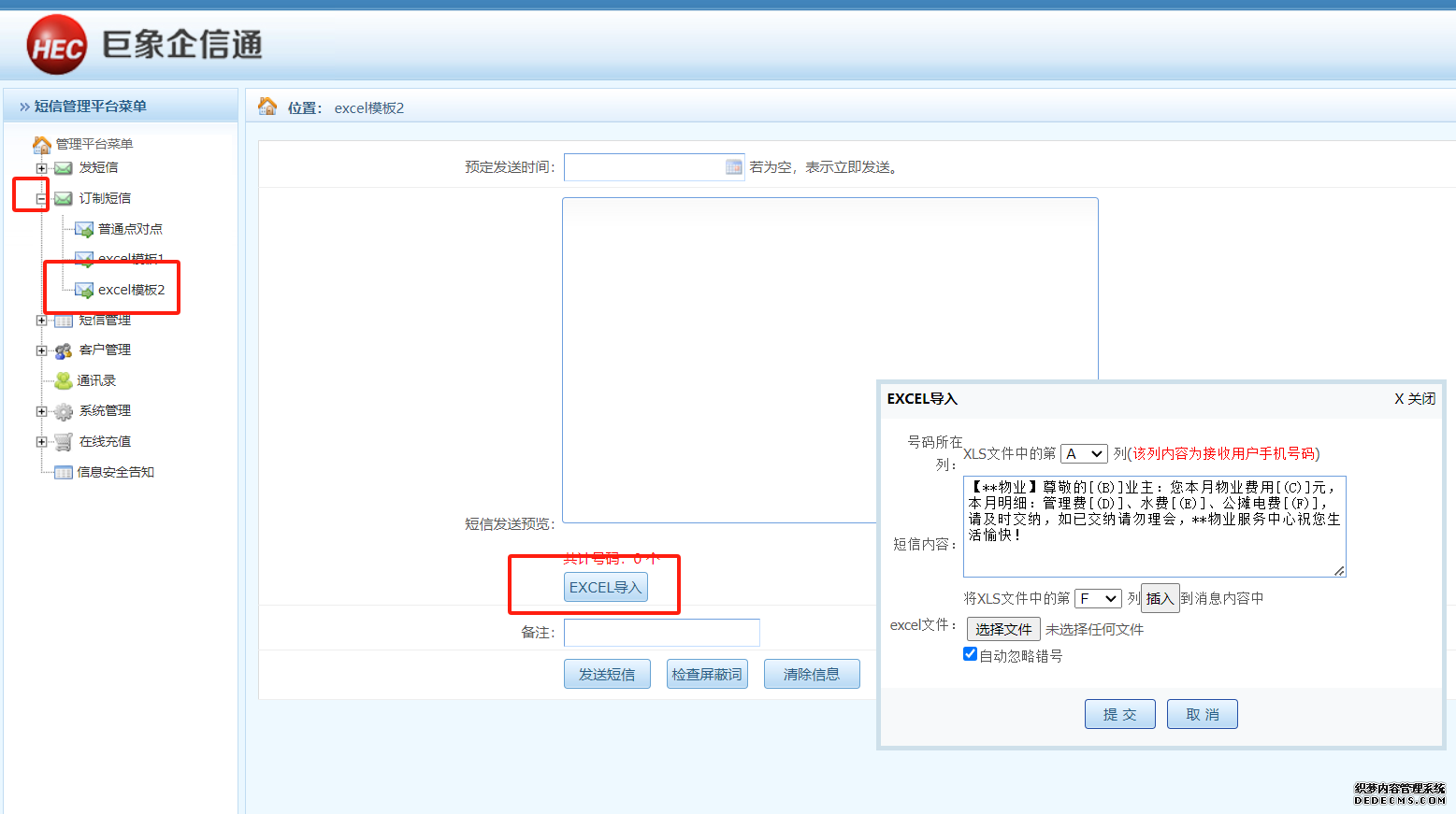 2、個(gè)性化變量短信群發(fā)操作,即一個(gè)批次群發(fā)的手機(jī)號(hào)碼收到的內(nèi)容不完全一樣,如內(nèi)容里加入稱呼、工資條、物業(yè)費(fèi)、賽事編號(hào)、座位號(hào)、學(xué)號(hào)等。